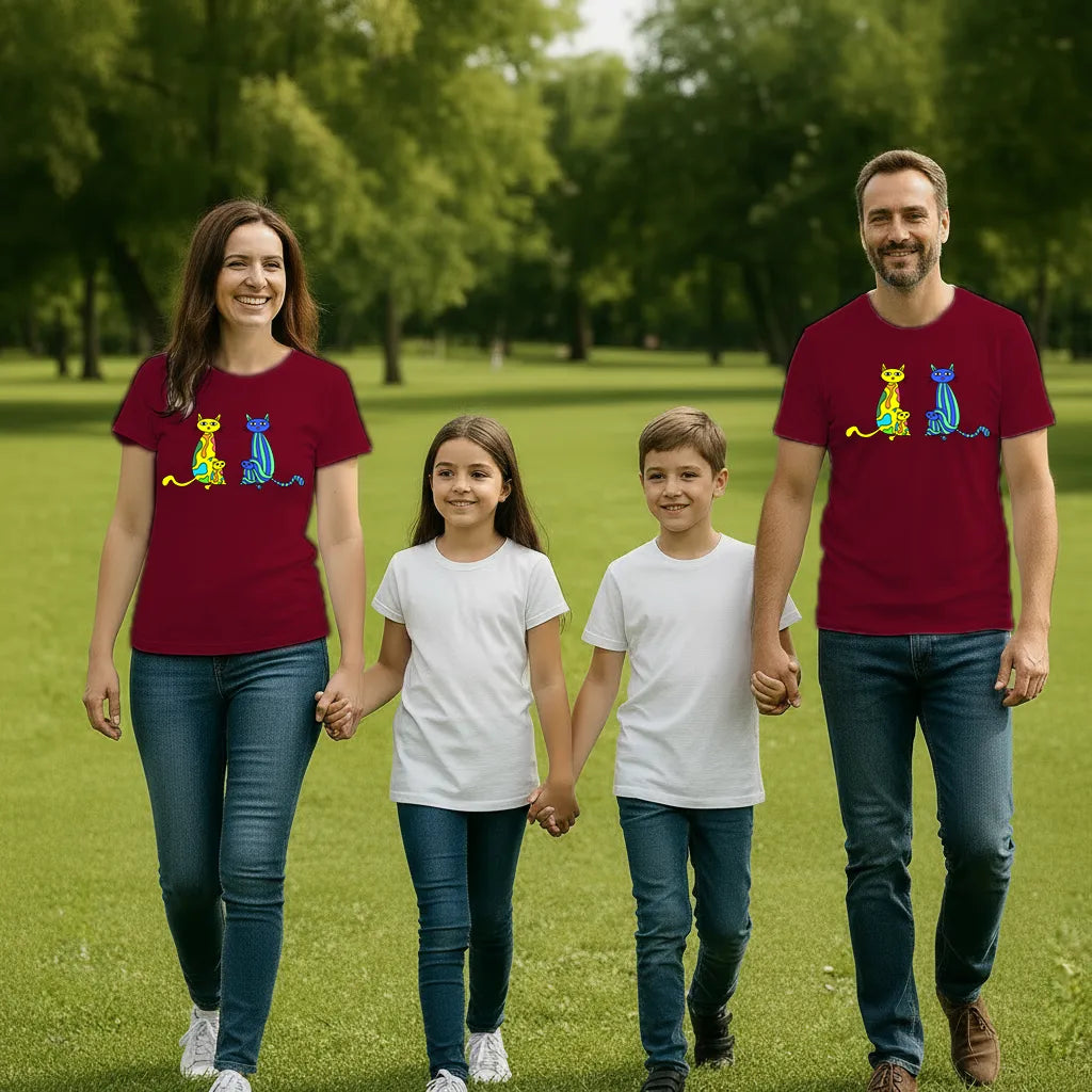 PAINTZSTORIES Four cats Unisex Cotton Round Neck T-Shirt | Modern Stylish Regular Fit Tee for Men & Women – Soft & Breathable Fabric, Casual Wear, Easy Care, Straight Hem, Comfortable Everyday Fit