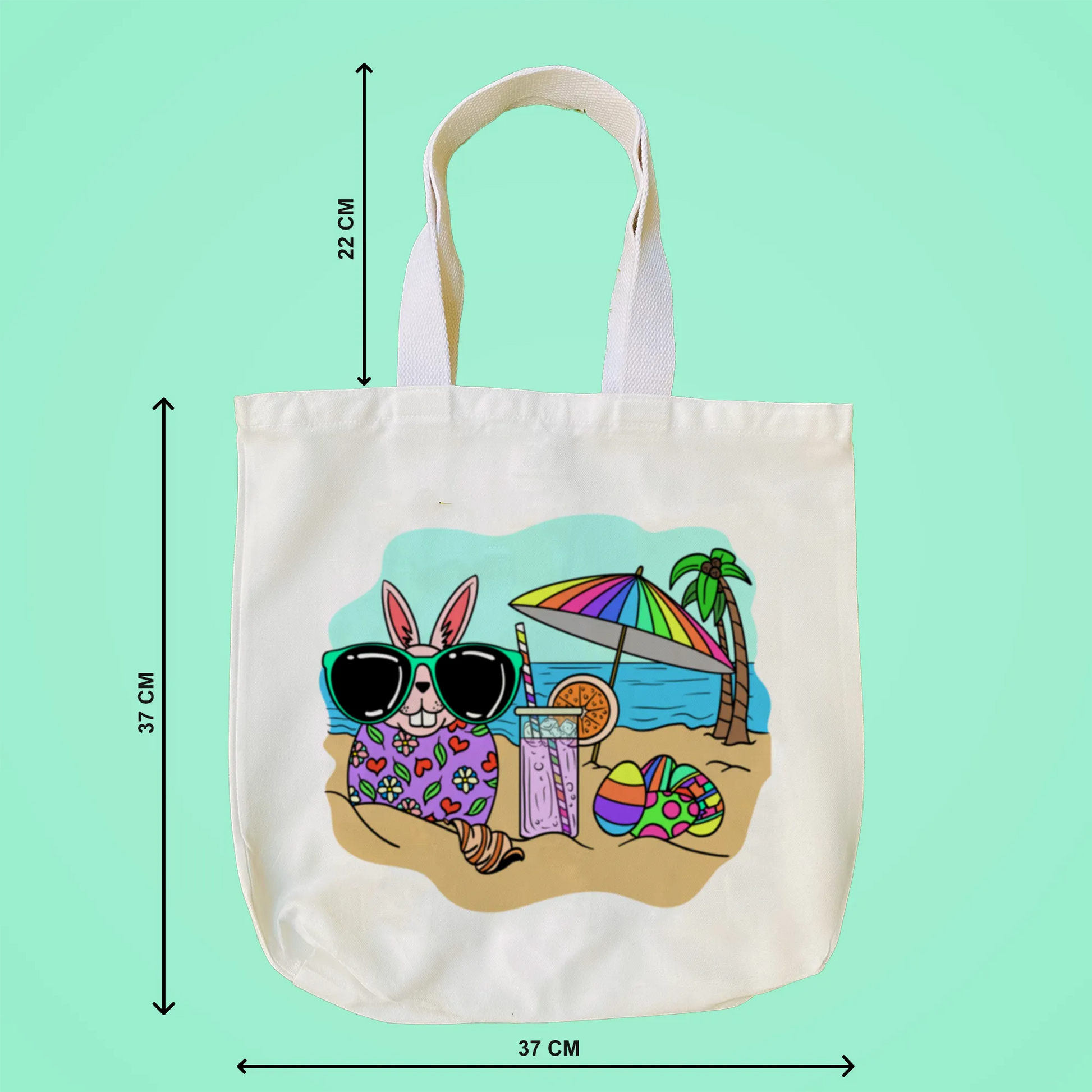 "Beach Rabbit With Easter Eggs" Artistic Tote Bag