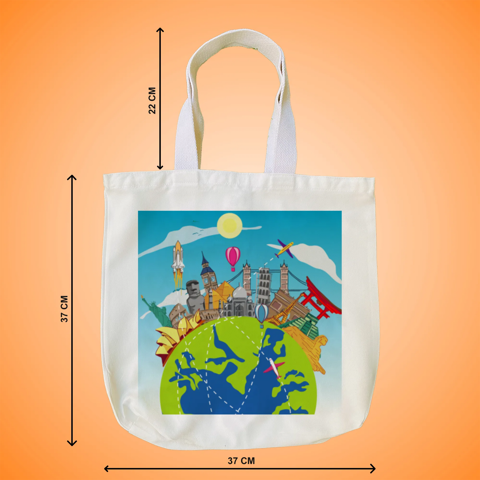 3. Size: 37 cm (width) by 37 cm (height); Handle height : 22 cm (vertically); Inside Open Pocket: 15*13 cm