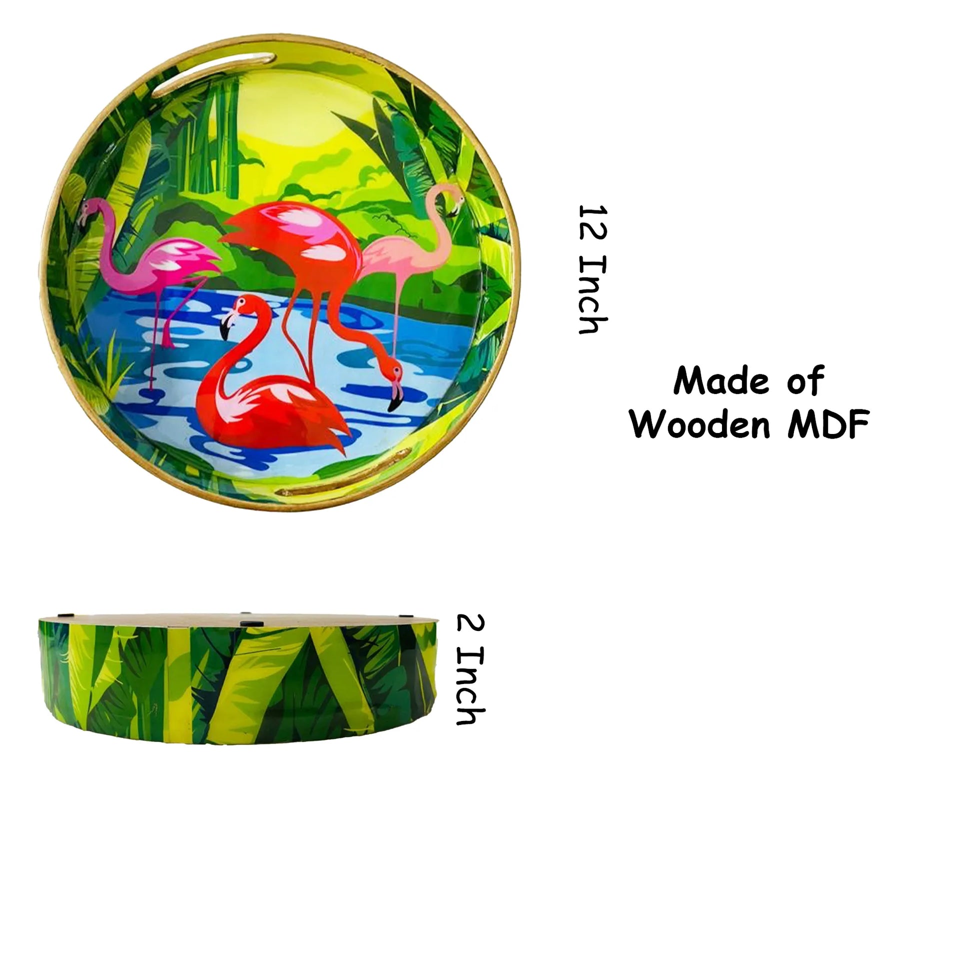 "Flamingo Elegance" Artistic Wooden Cutlery-Round Tray Large I Serve ware I Handmade I Living Room Décor I Decorative I Meena I Size-12*12*2 Inch