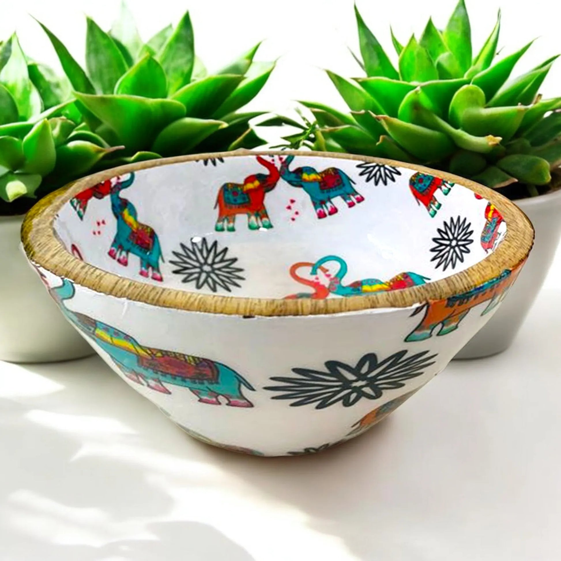 "Elephants In Love" Artistic Wooden Cutlery - Small Bowl I Serve ware I Hand Crafted I Living Room Décor I Decorative I Meena Print I Size-6*6*3 Inch