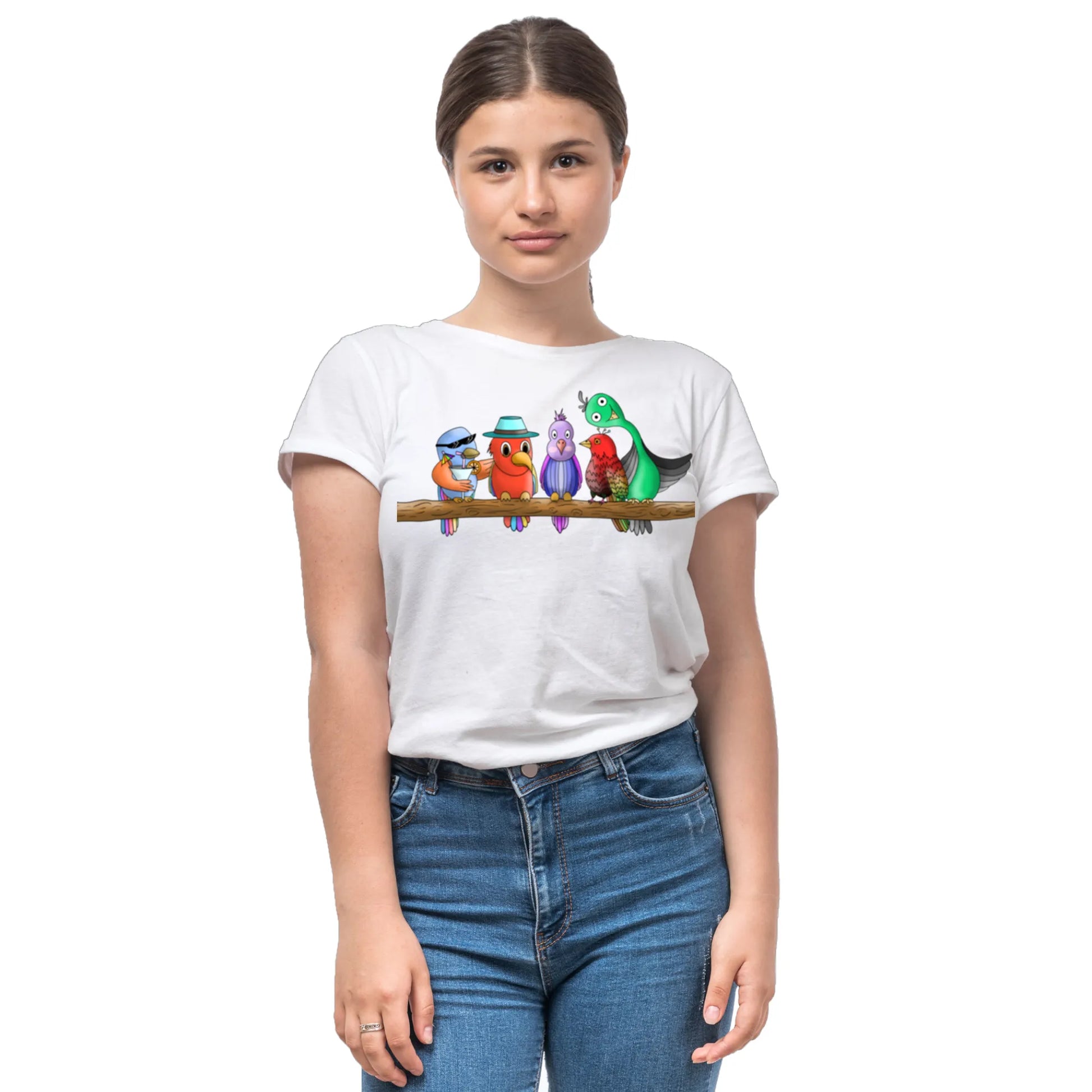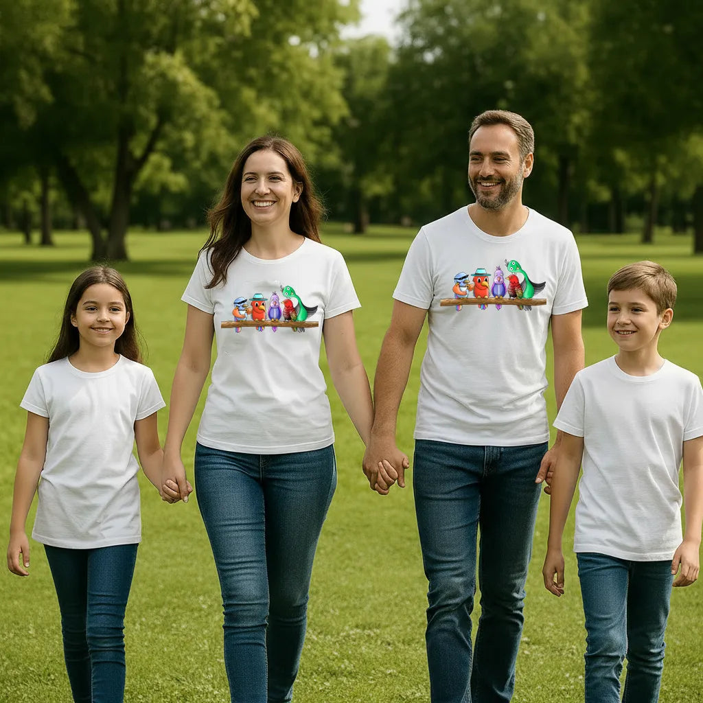 PAINTZSTORIES Five colourful Birds Unisex Cotton Round Neck T-Shirt | Modern Stylish Regular Fit Tee for Men & Women – Soft & Breathable Fabric, Casual Wear, Straight Hem, Comfortable Everyday Fit