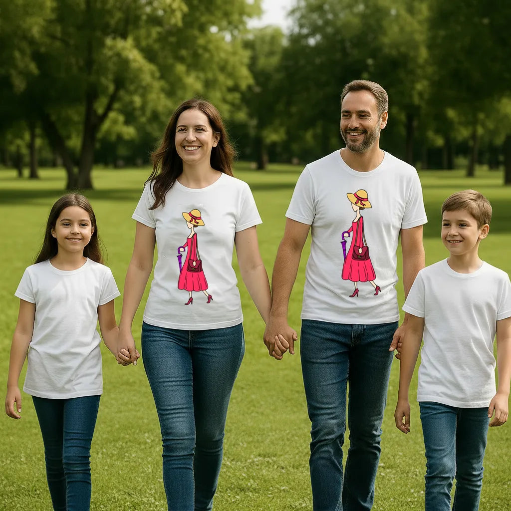 PAINTZSTORIES Walking Lady Unisex Cotton Round Neck T-Shirt | Modern Stylish Regular Fit Tee for Men & Women – Soft & Breathable Fabric, Daily Wear, Easy Care, Straight Hem, Comfortable Everyday Fit