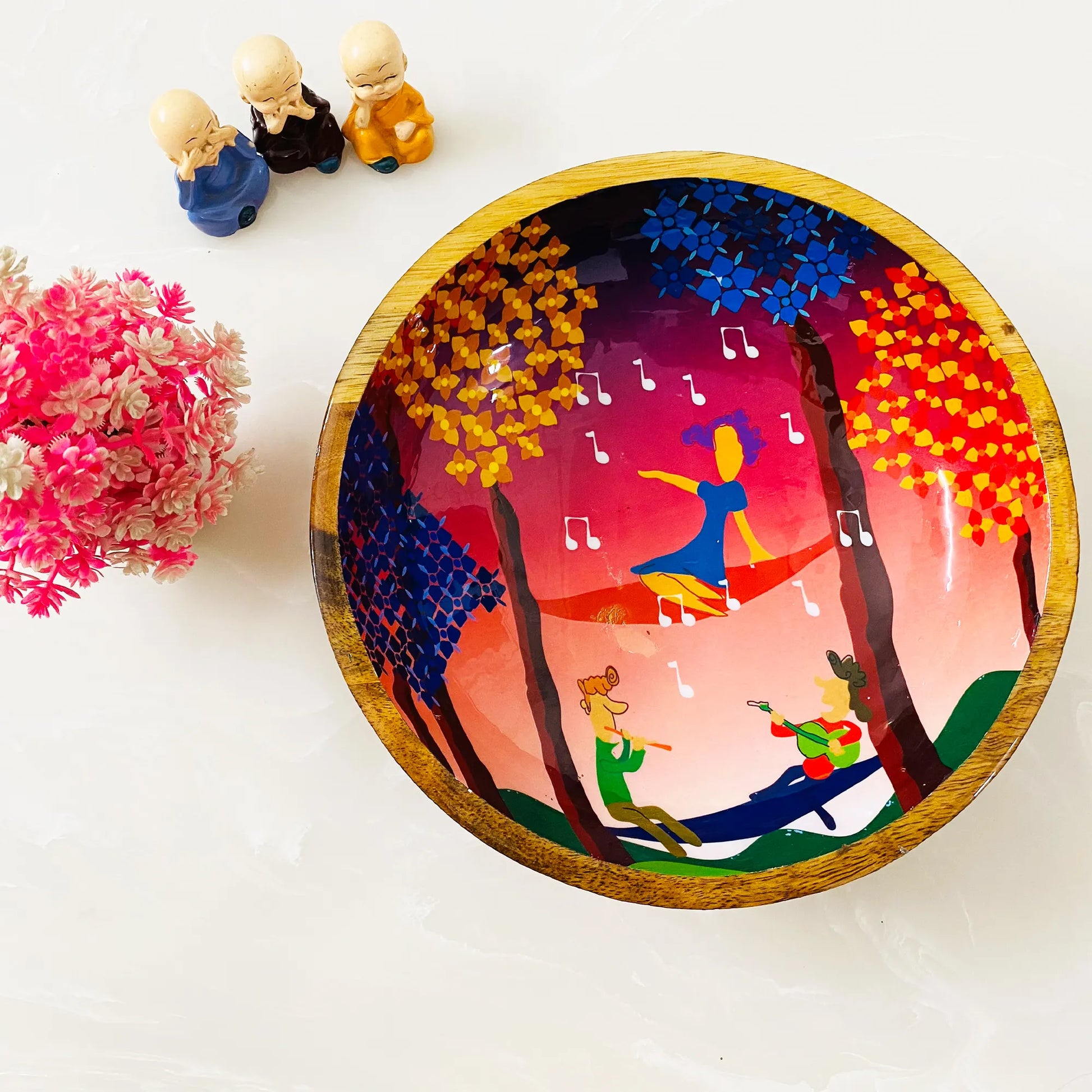 "Tree Serenade" Artistic Wooden Cutlery-Big Bowl with Serving Spoons I Dine ware I Hand Crafted I Living Room Décor I Decorative I Size-10*10*3 Inch