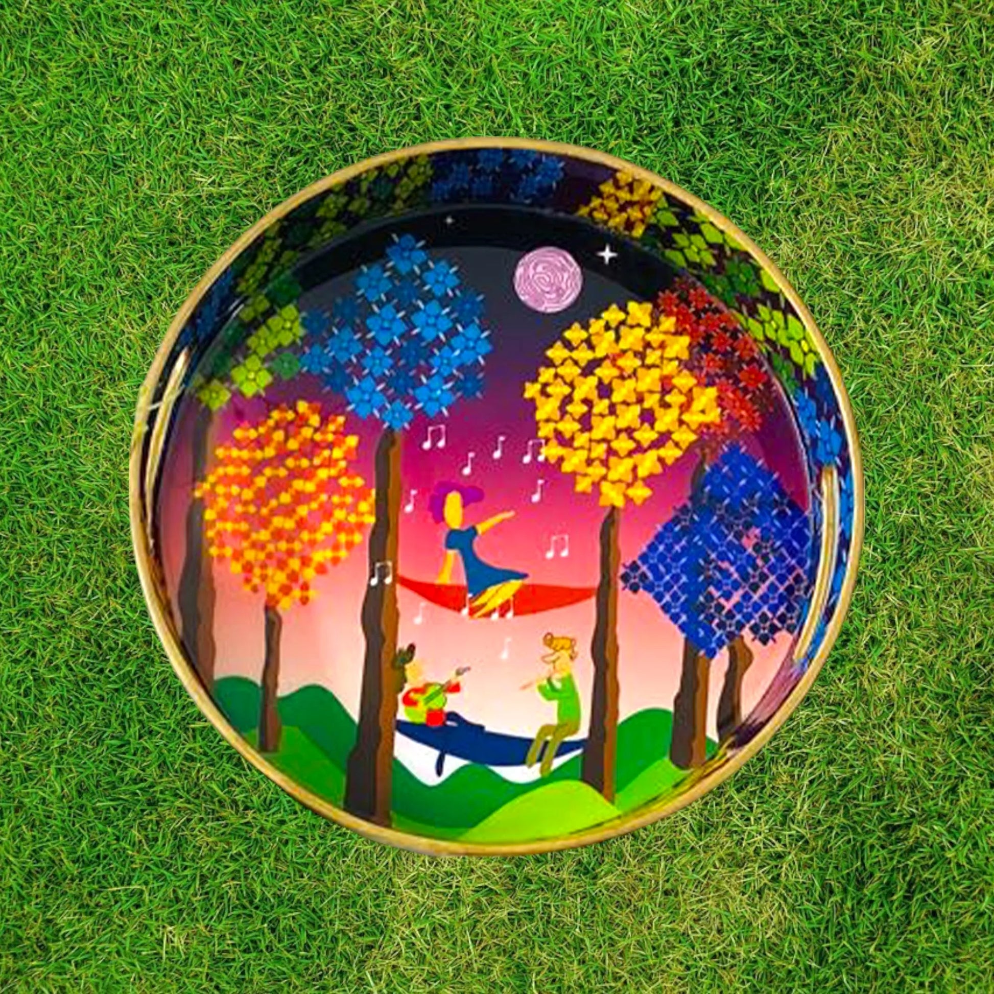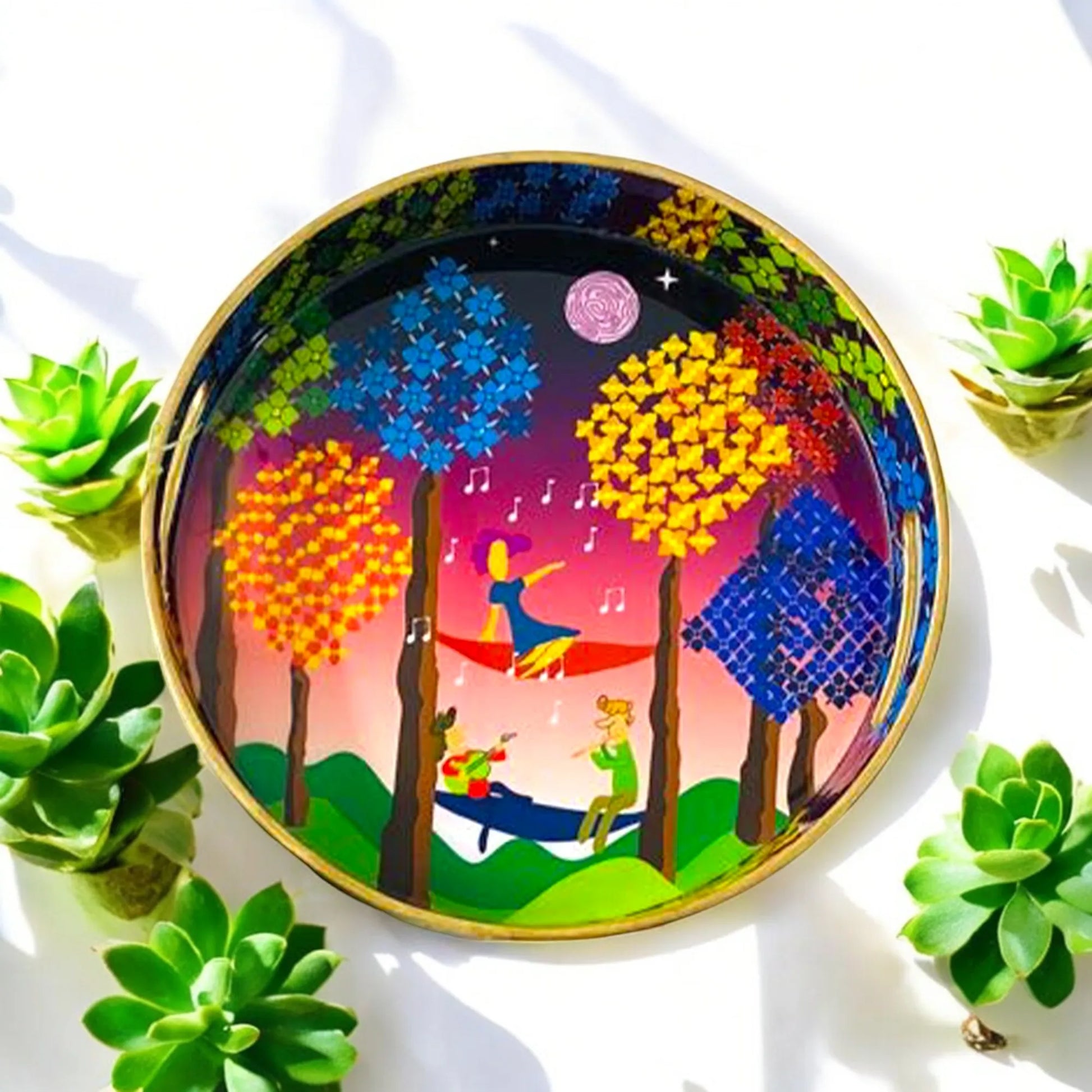 "Tree Serenade" Artistic Wooden Cutlery-Round Tray Large I Serve ware I Handmade I Living Room Décor I Decorative I Meena Print I Size-12*12*2 Inch