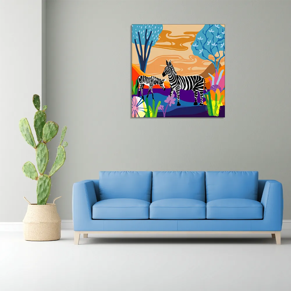 "Serenity Stripes: Sunset Tranquility with a Pair of Zebras" Canvas Print I Wall Décor I Art work I 2 Feet *2 Feet I Art on Wall I Authentic Art I