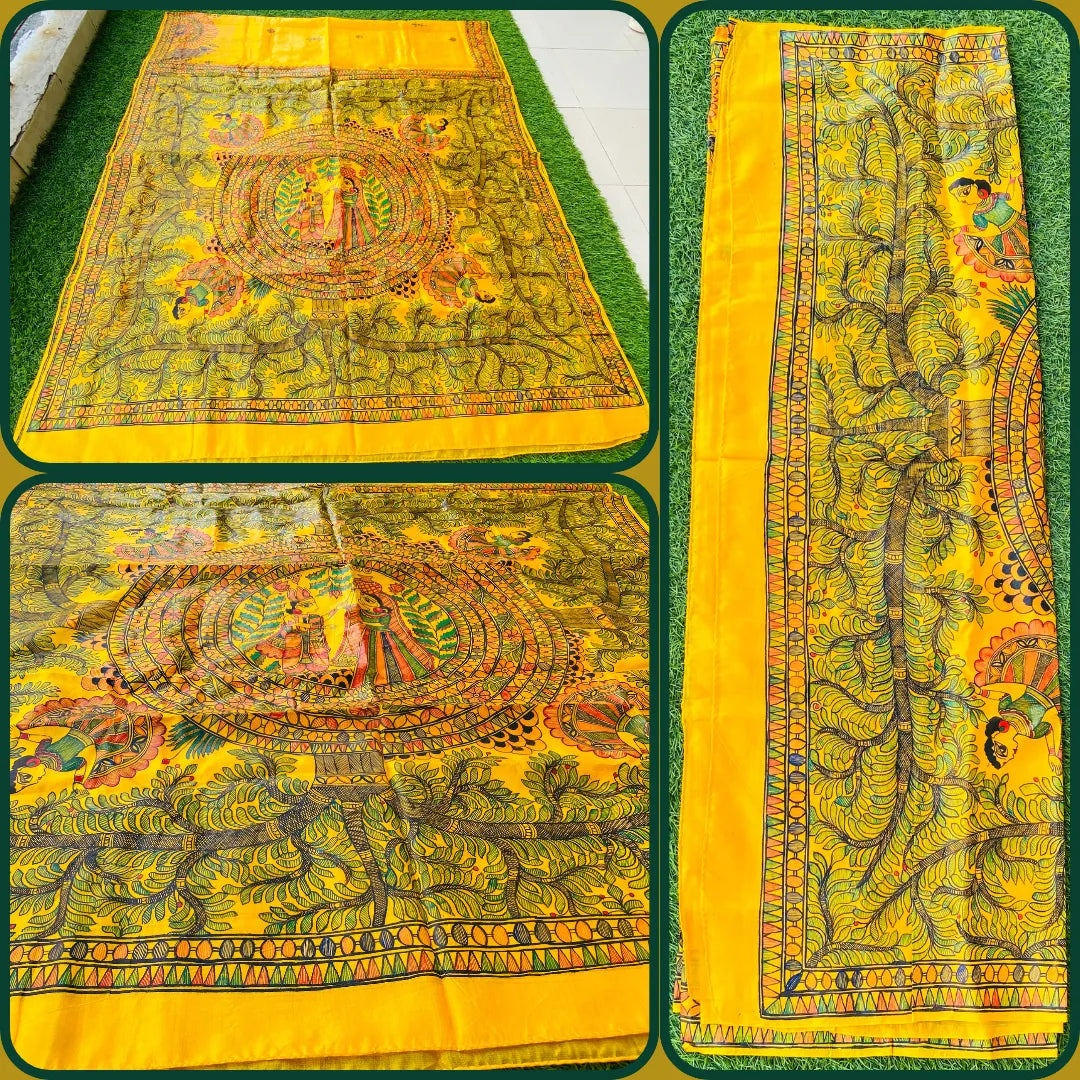 "Madhubani Handpainted Artistic Saree- Radha and Krishna"