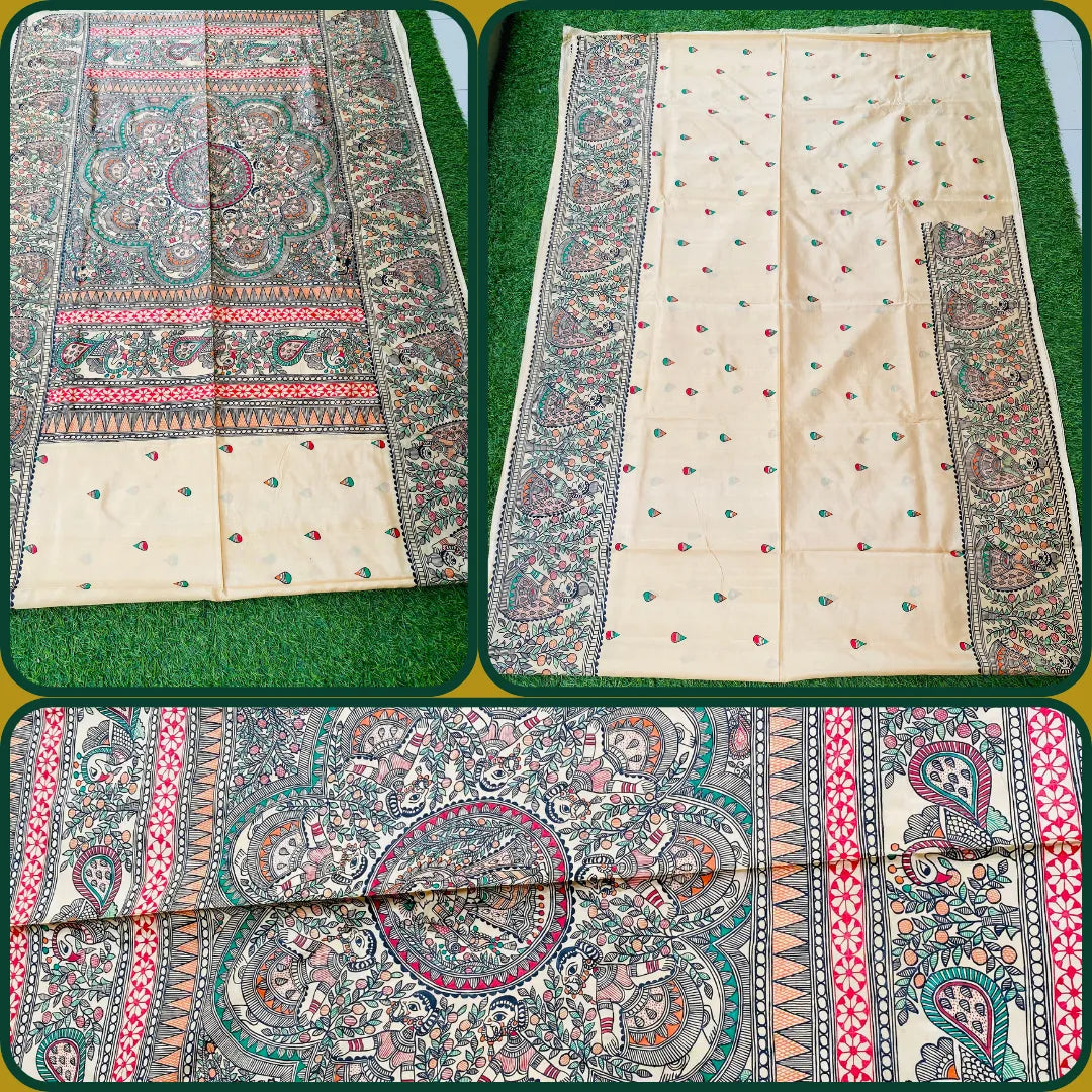 1.Package Content: 1 Madhubani Silk Designer Saree with Blouse , 2. Gift box to store the saree 3. Story of artwork/artist, 4. Welcome Letter