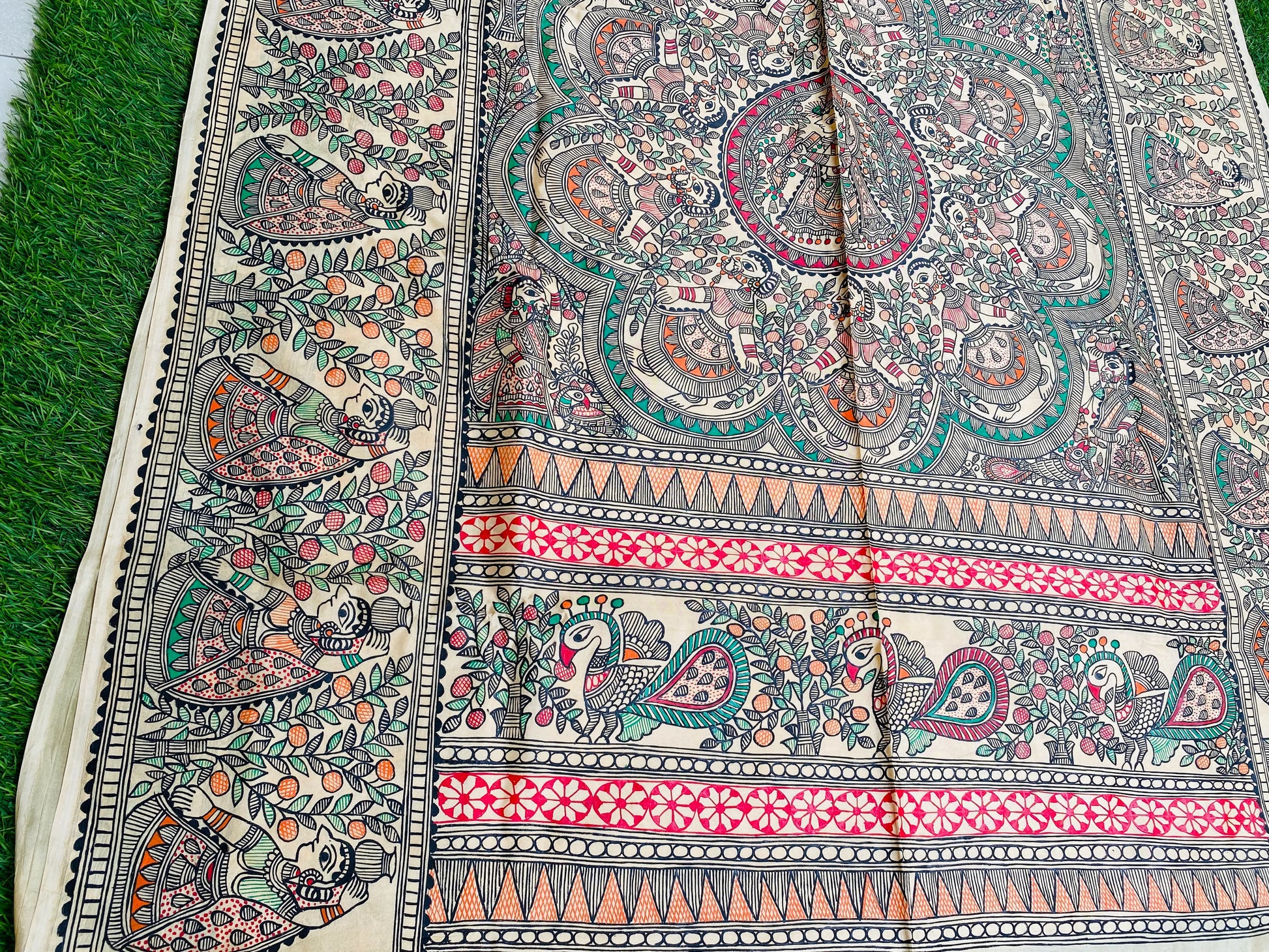 "Madhubani Handpainted Artistic Saree-The joyful dance of Krishna & the gopis "