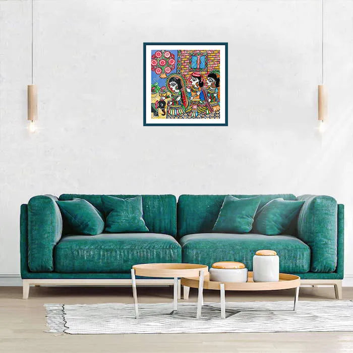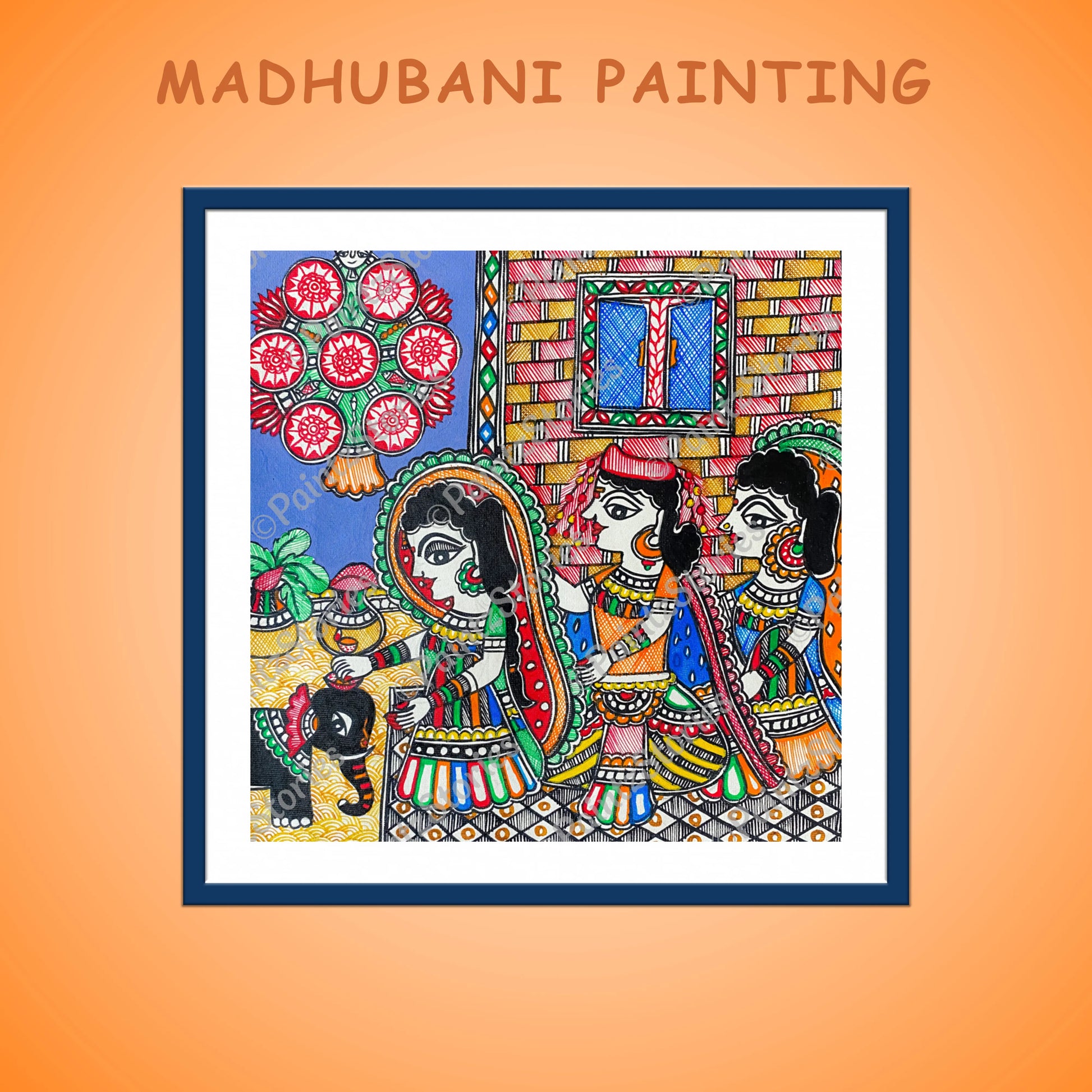 "Immerse yourself in the vibrant tradition of Madhubani painting (also called Mithila painting), where every brushstroke narrates a tale. Our authentic Madhubani artworks epitomize India's cultural richness with intricate designs, vivid hues, and meaningful symbols. Crafted by skilled artisans, each piece is a handmade masterpiece, offering a distinctive touch to your bedroom decor, living room decor, or wall decor, and honouring the artistic heritage of our nation."