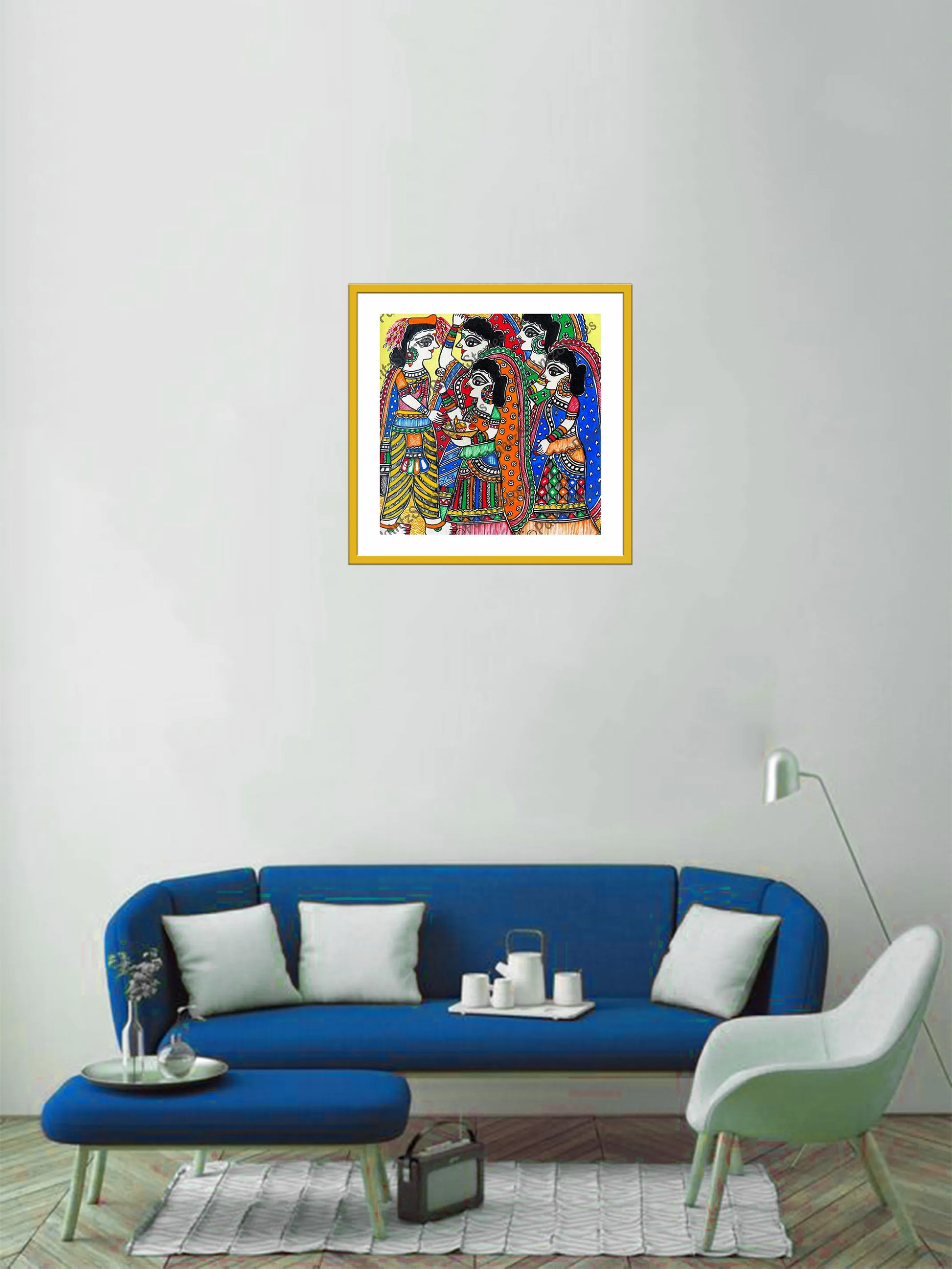 "Immerse yourself in the vibrant tradition of Madhubani painting (also called Mithila painting), where every brushstroke narrates a tale. Our authentic Madhubani artworks epitomize India's cultural richness with intricate designs, vivid hues, and meaningful symbols. Crafted by skilled artisans, each piece is a handmade masterpiece, offering a distinctive touch to your bedroom decor, living room decor, or wall decor, and honouring the artistic heritage of our nation."