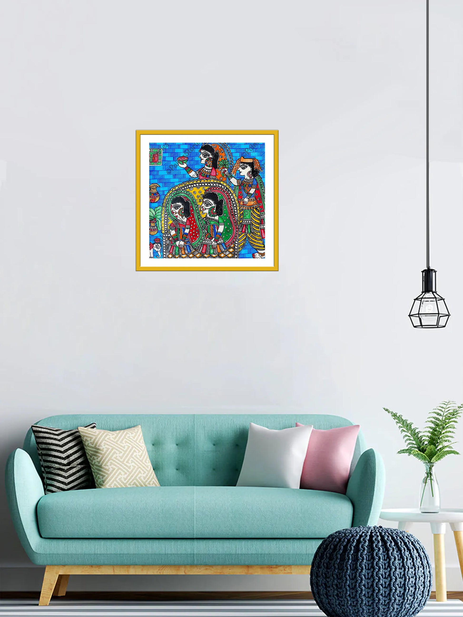 "Immerse yourself in the vibrant tradition of Madhubani painting (also called Mithila painting), where every brushstroke narrates a tale. Our authentic Madhubani artworks epitomize India's cultural richness with intricate designs, vivid hues, and meaningful symbols. Crafted by skilled artisans, each piece is a handmade masterpiece, offering a distinctive touch to your bedroom decor, living room decor, or wall decor, and honouring the artistic heritage of our nation."