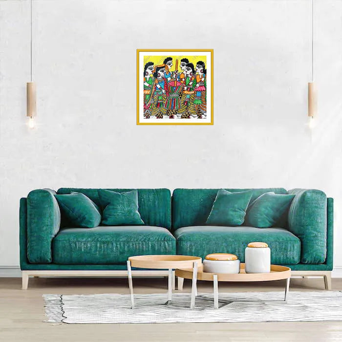 "Immerse yourself in the vibrant tradition of Madhubani painting (also called Mithila painting), where every brushstroke narrates a tale. Our authentic Madhubani artworks epitomize India's cultural richness with intricate designs, vivid hues, and meaningful symbols. Crafted by skilled artisans, each piece is a handmade masterpiece, offering a distinctive touch to your bedroom decor, living room decor, or wall decor, and honouring the artistic heritage of our nation."