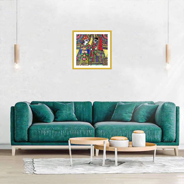 "Immerse yourself in the vibrant tradition of Madhubani painting (also called Mithila painting), where every brushstroke narrates a tale. Our authentic Madhubani artworks epitomize India's cultural richness with intricate designs, vivid hues, and meaningful symbols. Crafted by skilled artisans, each piece is a handmade masterpiece, offering a distinctive touch to your bedroom decor, living room decor, or wall decor, and honouring the artistic heritage of our nation."