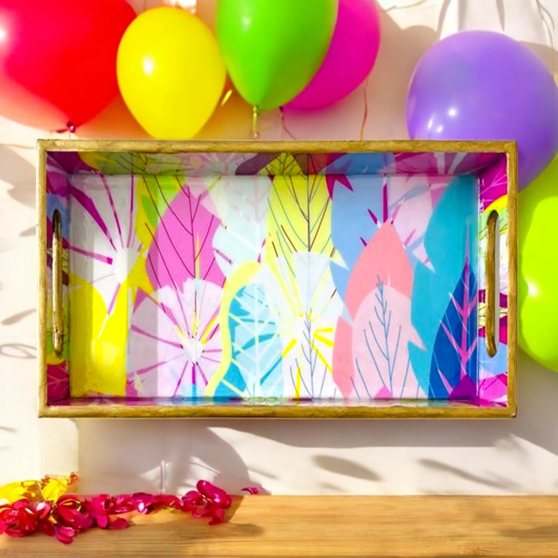 "Cycle of Seasons" Artistic Wooden Cutlery-Rectangular Tray- Large I Serve ware I Hand Crafted I Decorative I Meena Print I Gift I Size-16*10*2 Inch