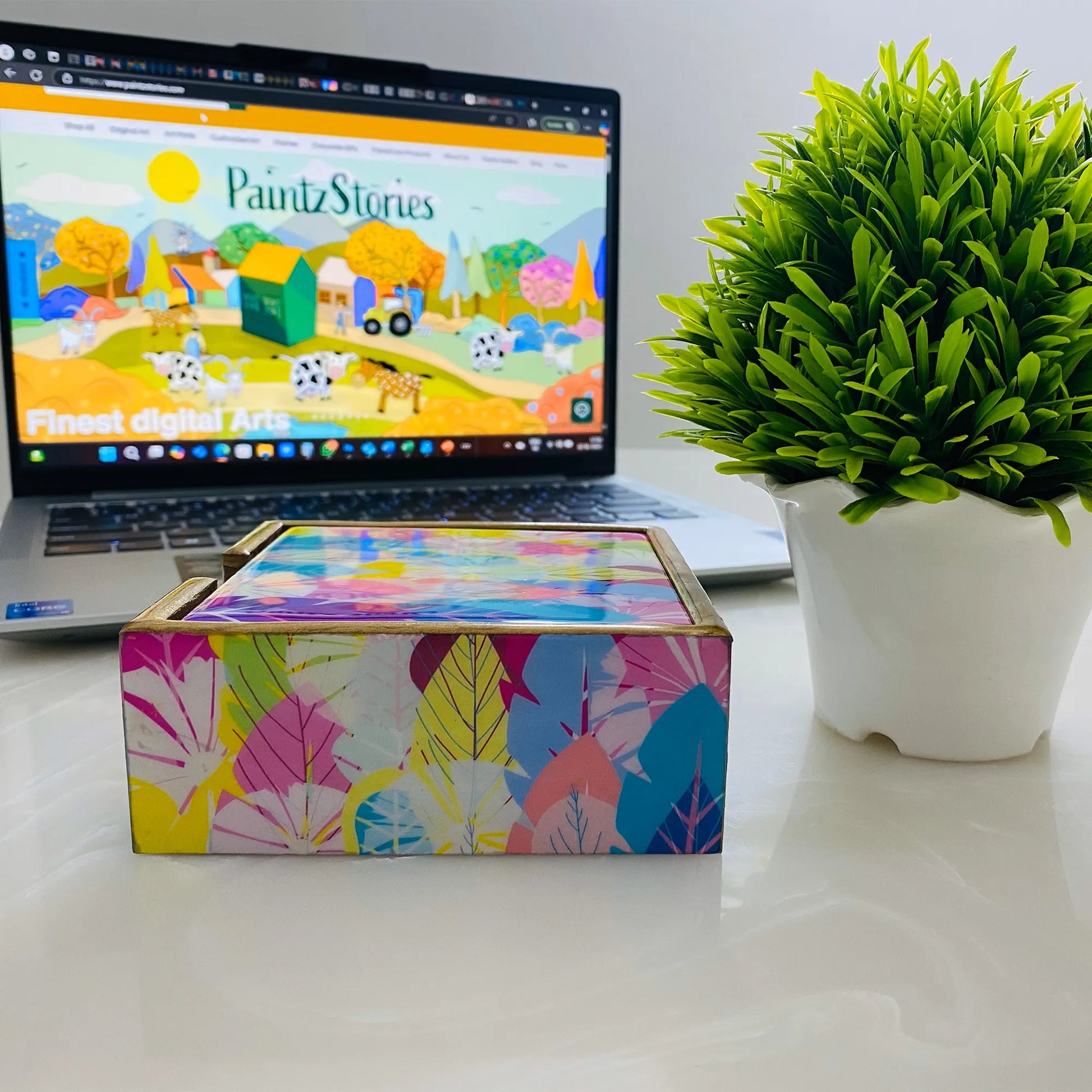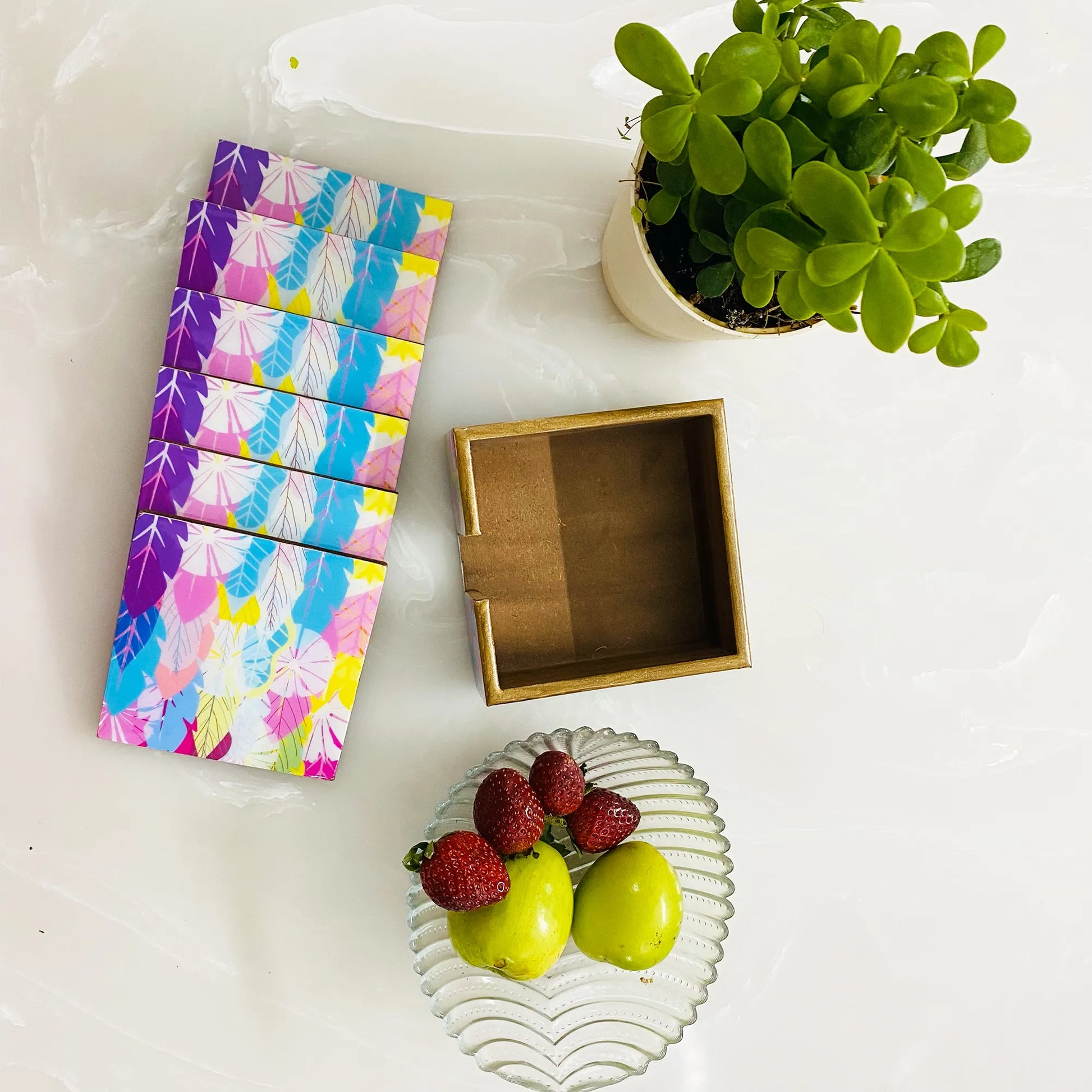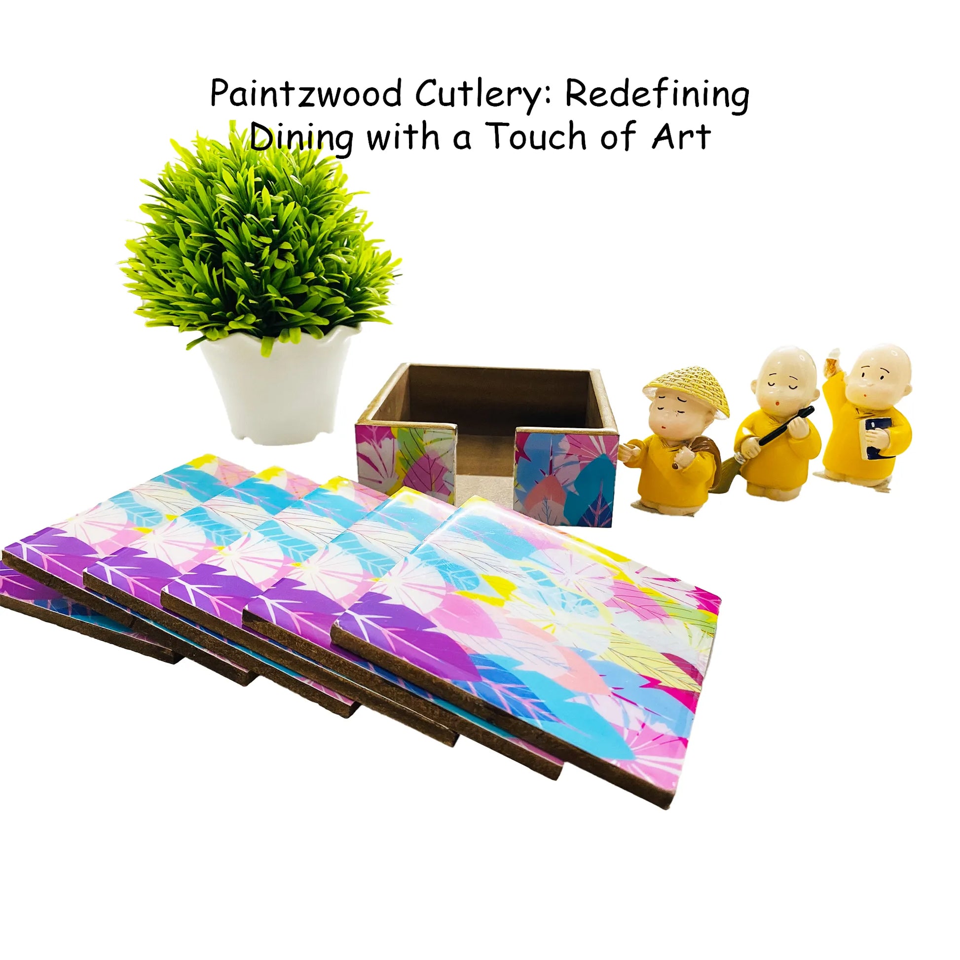 3.Items included : Set of 6 Wooden Coasters with holder ( 4*4 Inch), PaintzStories' Card, Paintz Welcome Letter