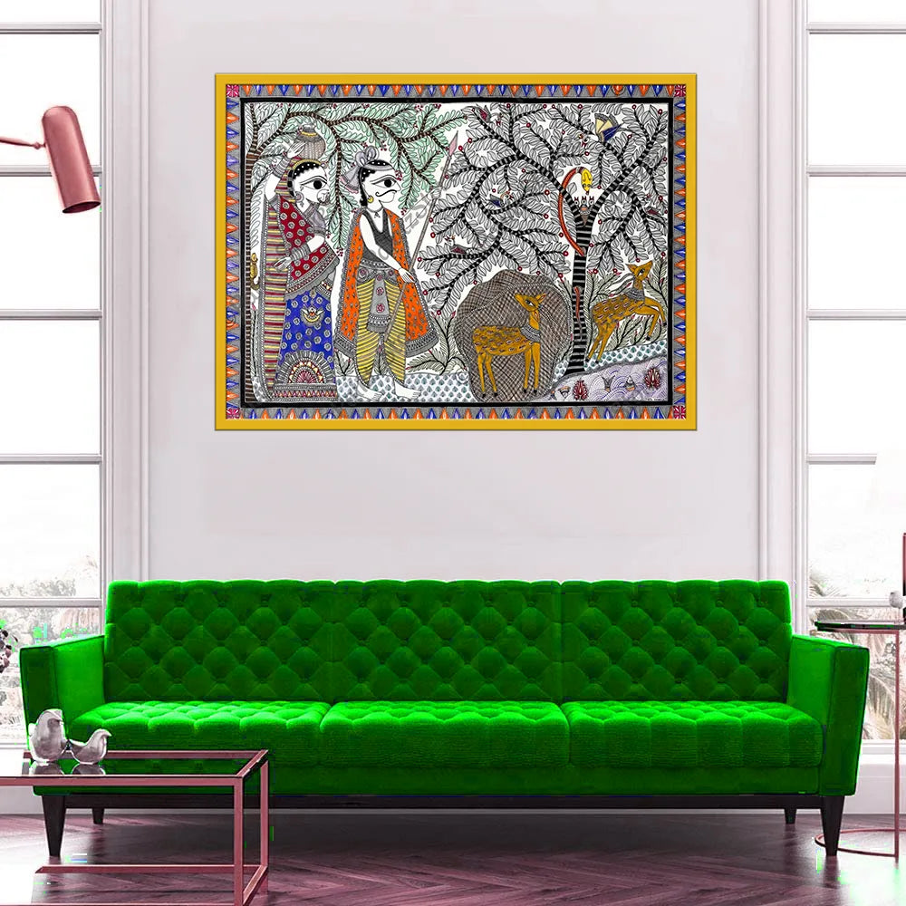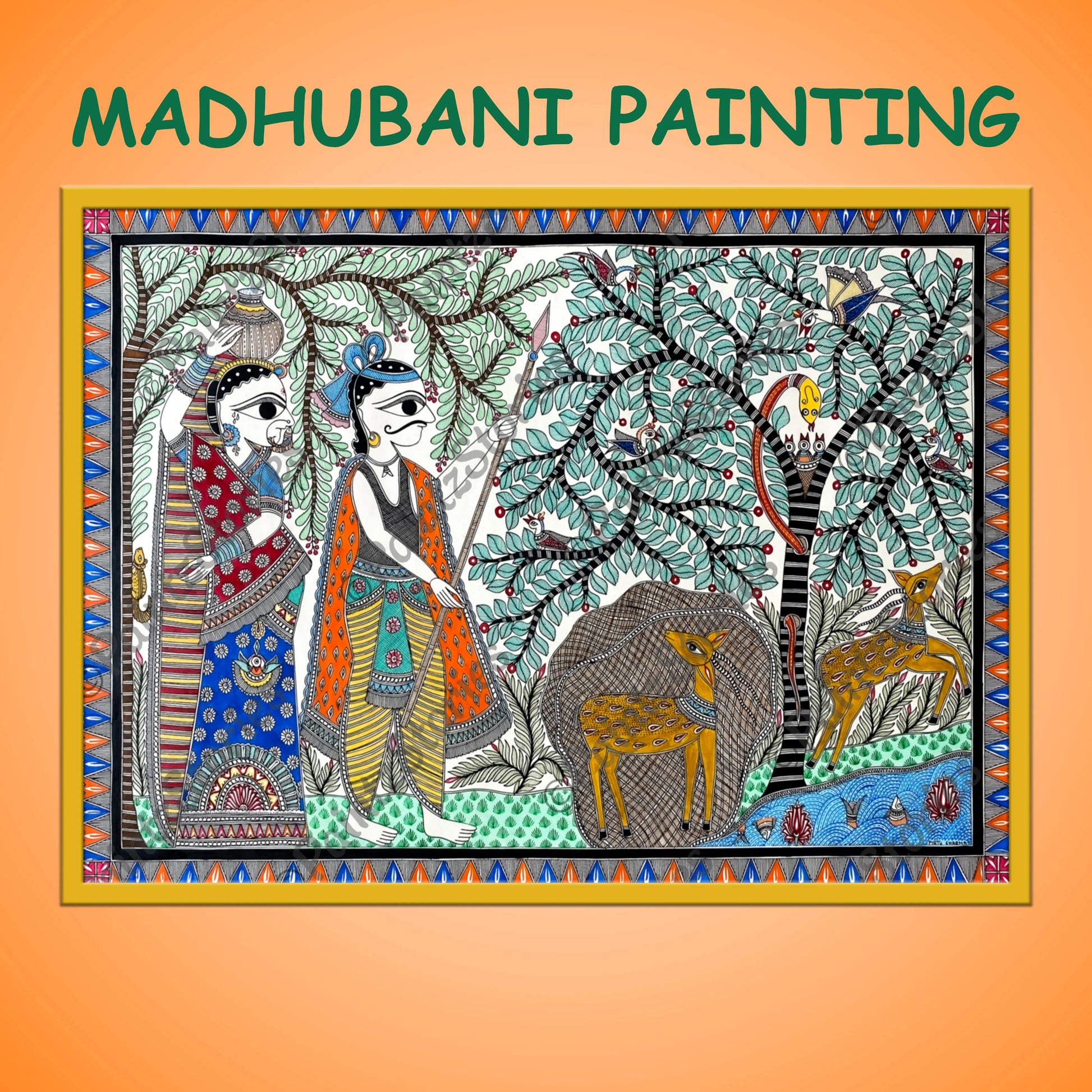 "Immerse yourself in the vibrant tradition of Madhubani painting (also called Mithila painting), where every brushstroke narrates a tale. Our authentic Madhubani artworks epitomize India's cultural richness with intricate designs, vivid hues, and meaningful symbols. Crafted by skilled artisans, each piece is a handmade masterpiece, offering a distinctive touch to your bedroom decor, living room decor, or wall decor, and honouring the artistic heritage of our nation."