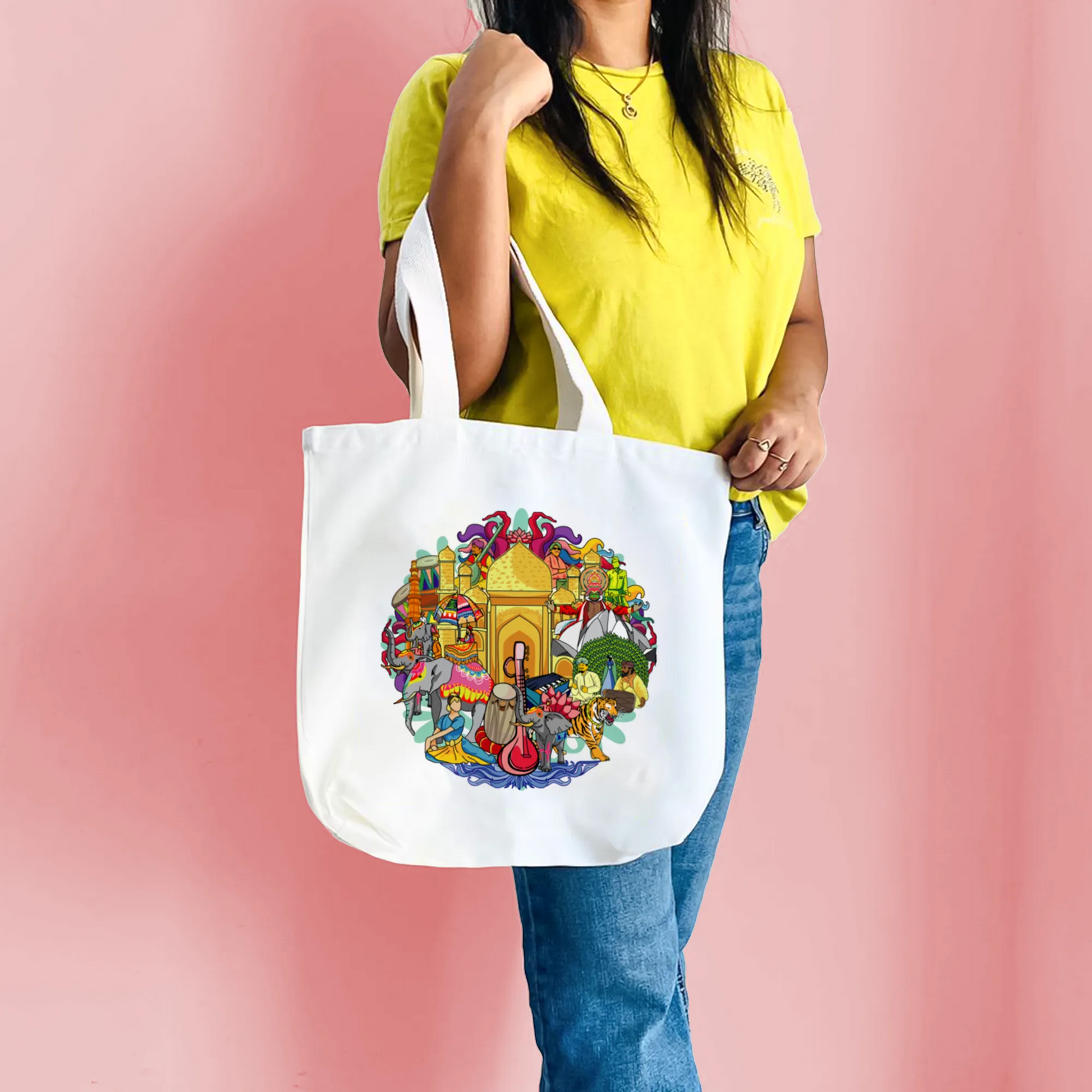 "Vibrant Doodle Illustration Celebrating India's Rich Culture and Heritage" Artistic Tote Bag