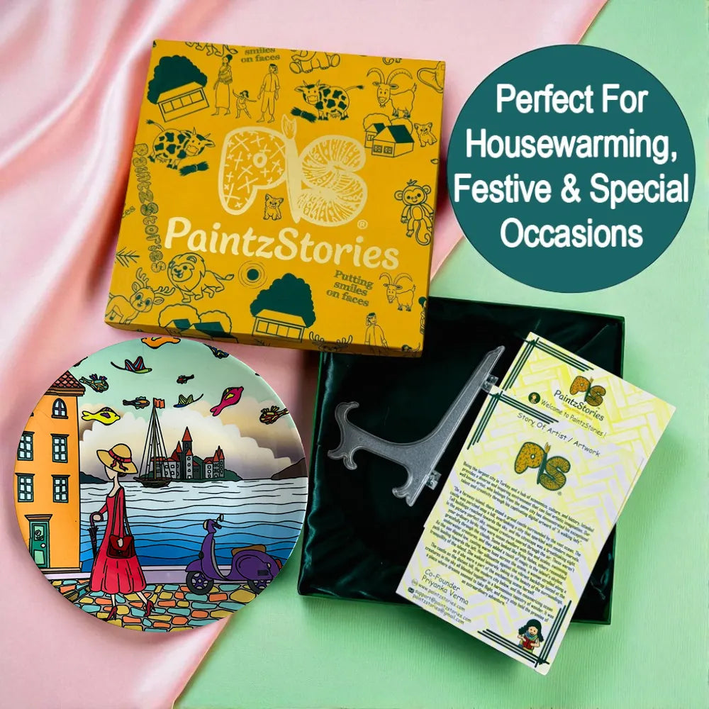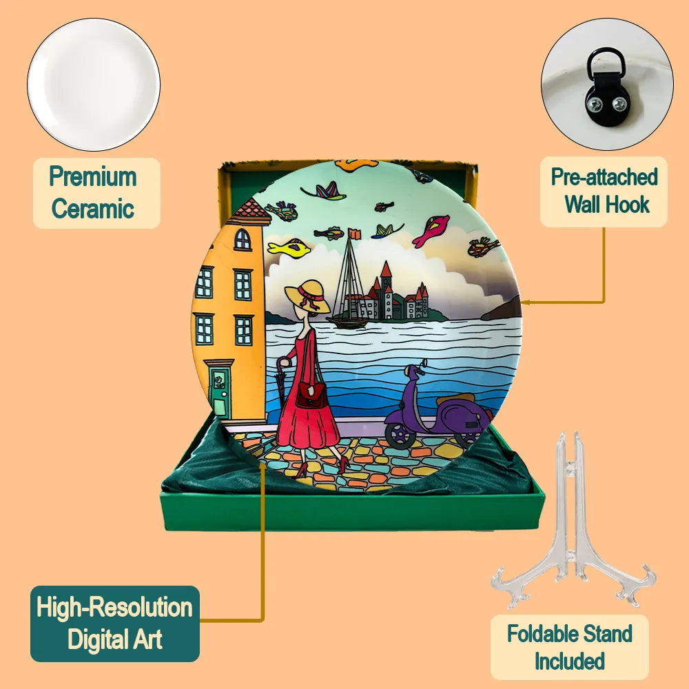 PAINTZSTORIES Decorative Wall Plate for Home Decoration | Ceramic Wall Art Plate | Wall Decor items for Living Room & Bedroom | Handmade Artwork A Walking Lady | Gift for house | 10 INCH