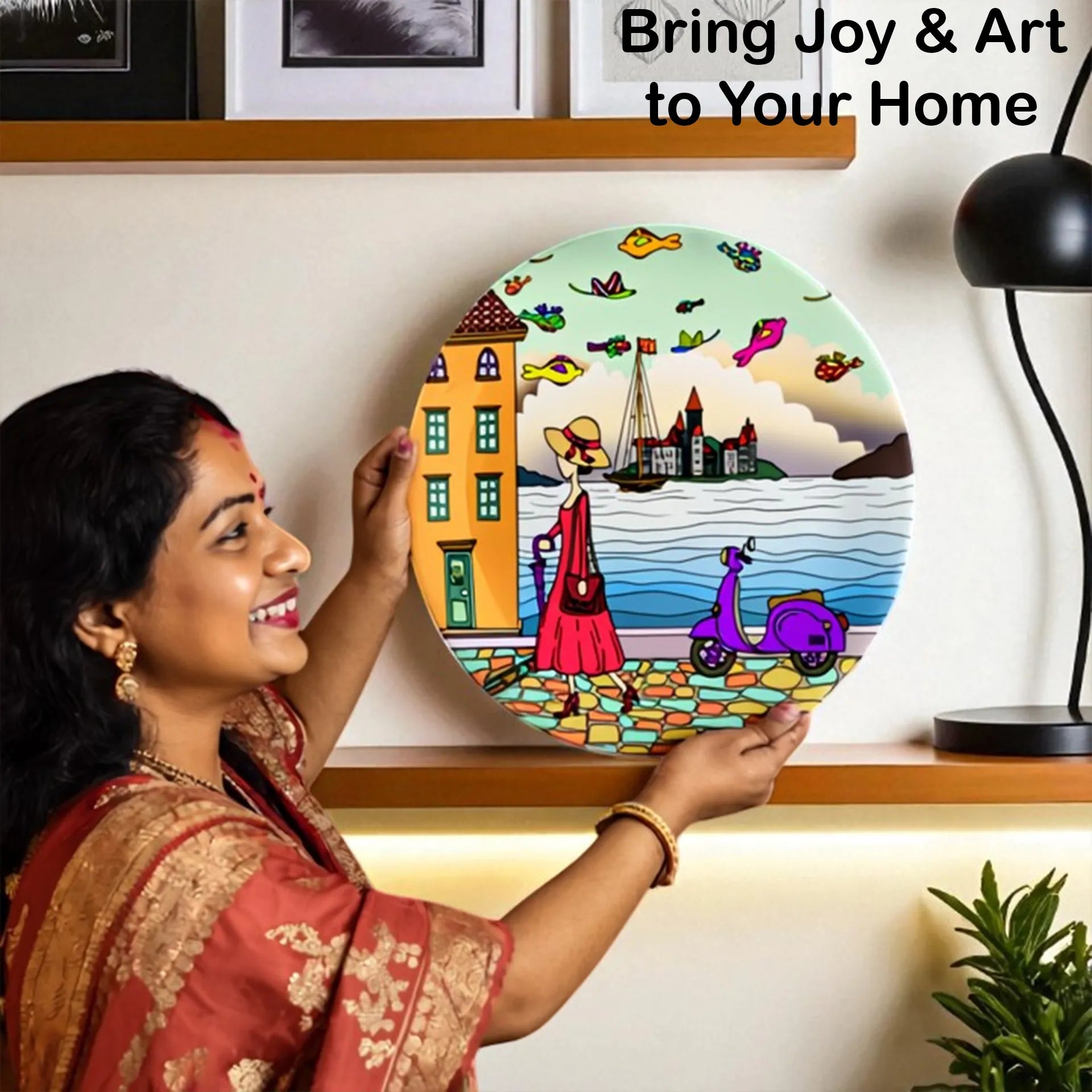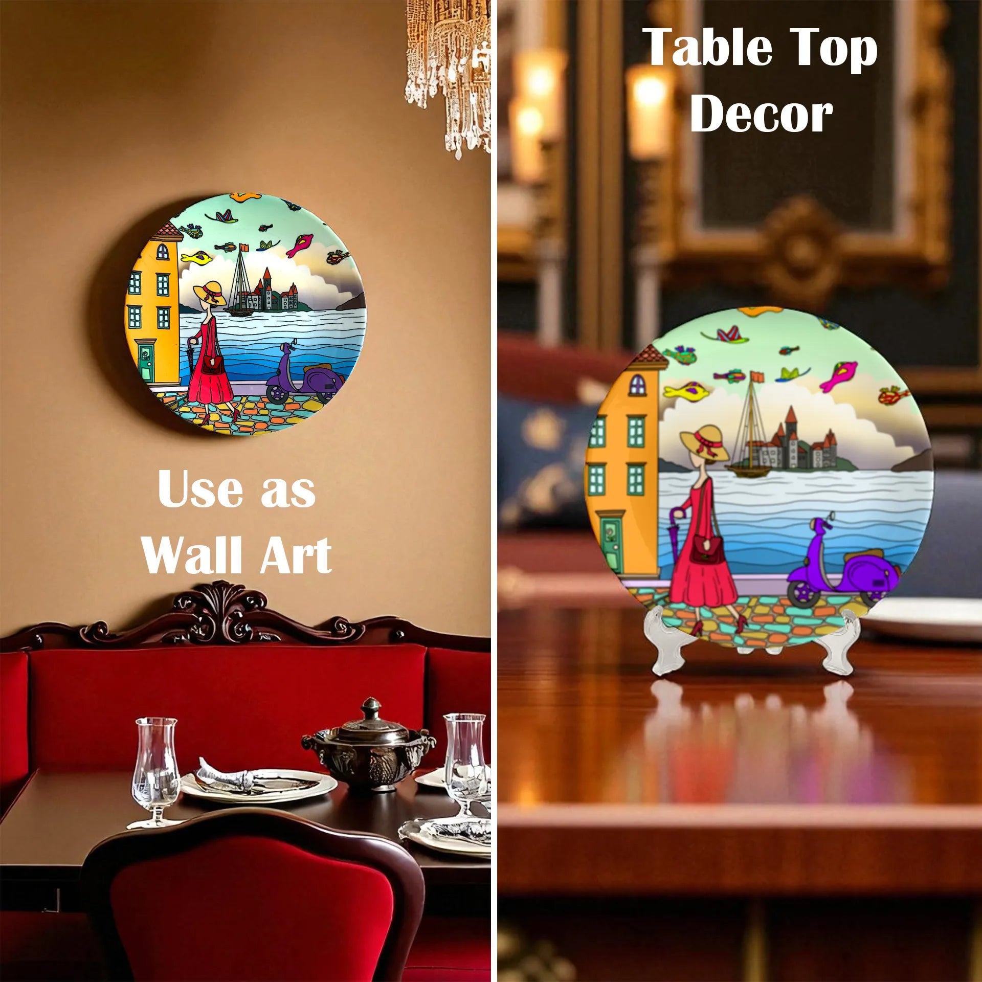 1. HIGH-QUALITY CERAMIC PLATE: Made from premium ceramic with stunning digital artwork created by talented international artists. Adds timeless elegance to your home decor, making it a standout decorative piece for your living room or bedroom.