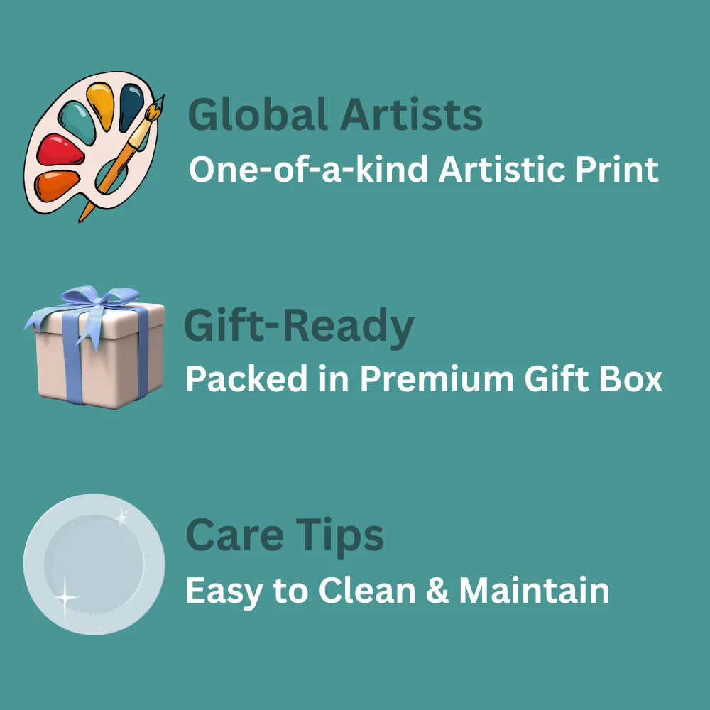 2. THOUGHTFUL GIFT BOX WITH ARTWORK STORY: Each decorative plate comes beautifully packed in a premium gift box, along with a special card sharing the story of the artwork and artist. This thoughtful detail makes it more than just decor — it’s a meaningful keepsake, which is why our products are valued above ordinary wall plates.